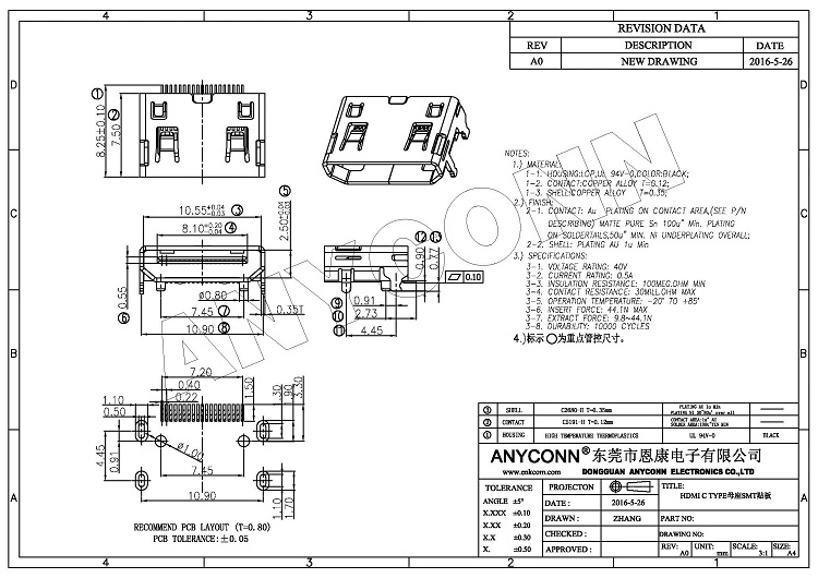 型号:HDMI C 母座 SMT 镀NI